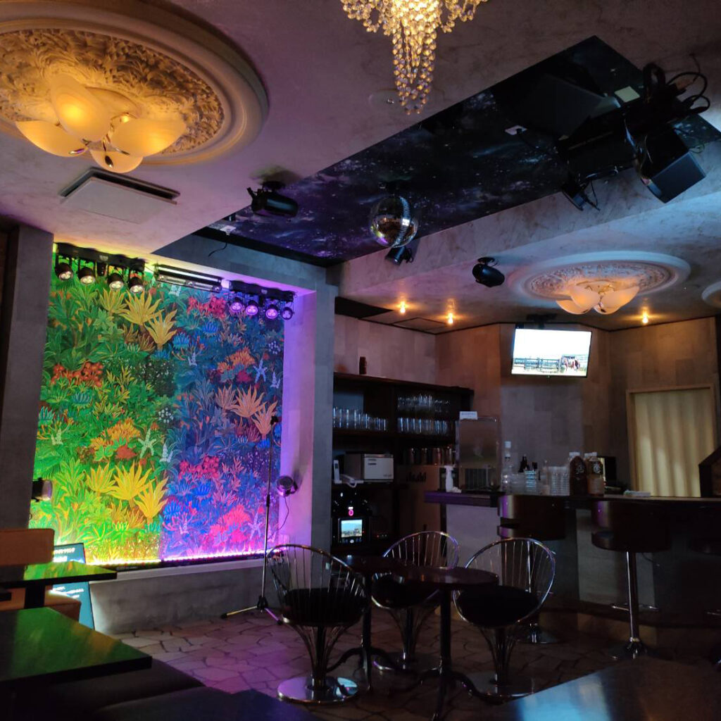 こだわりは居心地の良い空間とカラオケ好きにはたまらないステージでは高品質なサウンドとマイクスタンド、スモーク、正面器材が充実しており臨場感MAXです。